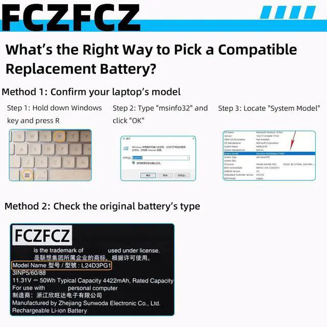 InstructionsPlease open the back cover of the laptop before purchasing and confirm that the original battery type is the same as the picture. Please read the battery instruction manual carefully before installing the battery. Please install the battery correctly and ensure that the battery interface and the motherboard are firmly connected. Please use the original charger to charge the laptop. After battery installation, discharge the new battery to 5% (not 0%), then charge and cycle 3-4 times to wake up the new battery.