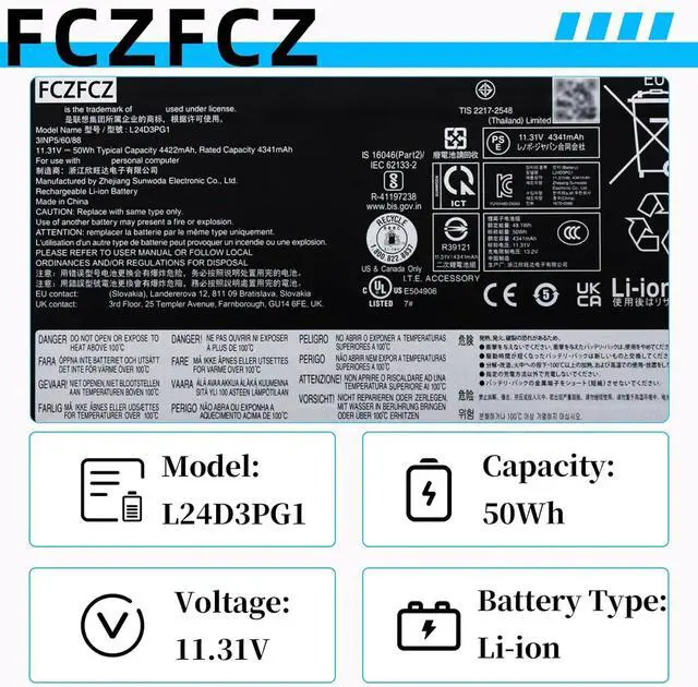 SpecificationsBattery Model:L24D3PG1 // Voltage:11.31V // Capacity:50Wh 4422mAh 3-cell // Color:Black // Condition:Brand New.