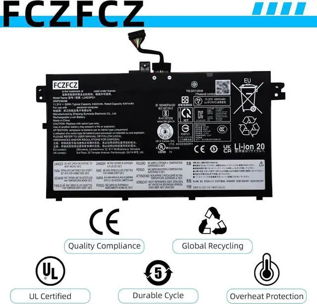 SafetyAll FCZFCZ products are Certified by CE, UL for safety. Each battery is factory tested before shipment and at good condition, and have its mark. Built-in circuit protection ensures both safety and stability. Each battery has high capacity to provide enduring, continual use.