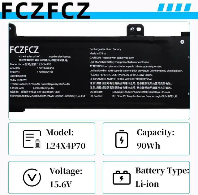 SpecificationsBattery Model:L24X4P70 // Voltage:15.6V // Capacity:90Wh 5770mAh 4-cell // Color:Black // Condition:Brand New.