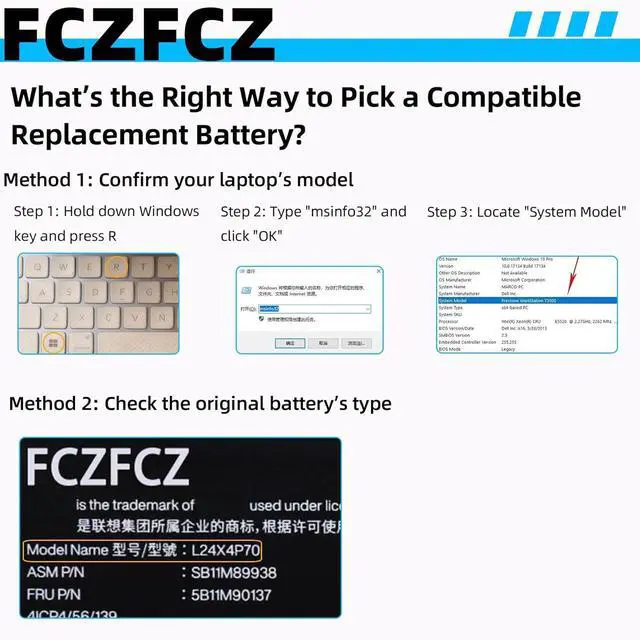 InstructionsPlease open the back cover of the laptop before purchasing and confirm that the original battery type is the same as the picture. Please read the battery instruction manual carefully before installing the battery. Please install the battery correctly and ensure that the battery interface and the motherboard are firmly connected. Please use the original charger to charge the laptop. After battery installation, discharge the new battery to 5% (not 0%), then charge and cycle 3-4 times to wake up the new battery.