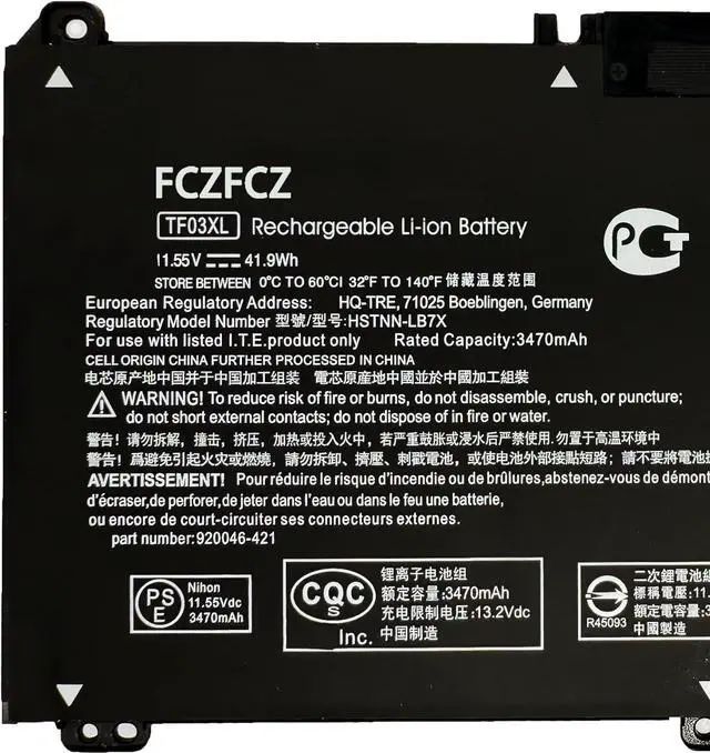 TF03XL TF03041XL HSTNN-IB7Y HSTNN-LB7J HSTNN-LB7X HSTNN-UB7J 920046-121