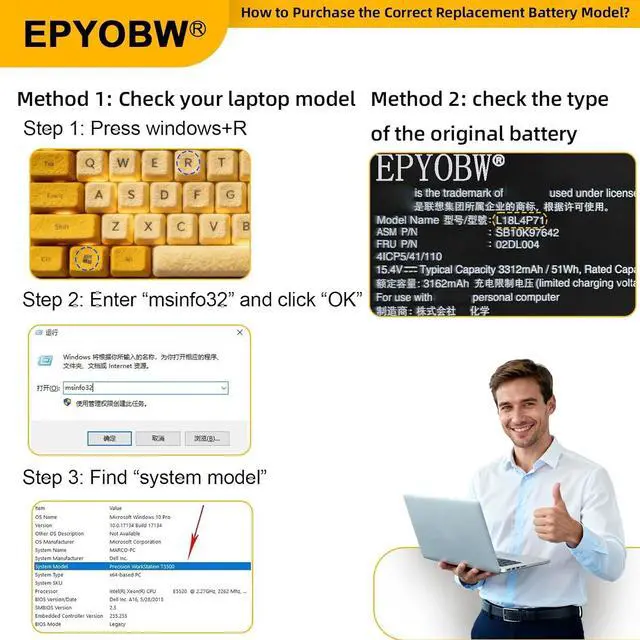 Purchase SkillsPlease open the back cover of the laptop before ordering and make sure that the original battery model is consistent with the listing. After getting the battery, please install the battery correctly, make sure that the battery connector is firmly connected to the laptop motherboard, and use the original charger to charge the laptop.Discharge the new battery to 5% (not 0%), then charge and cycle 3-4 times to wake up the new battery.