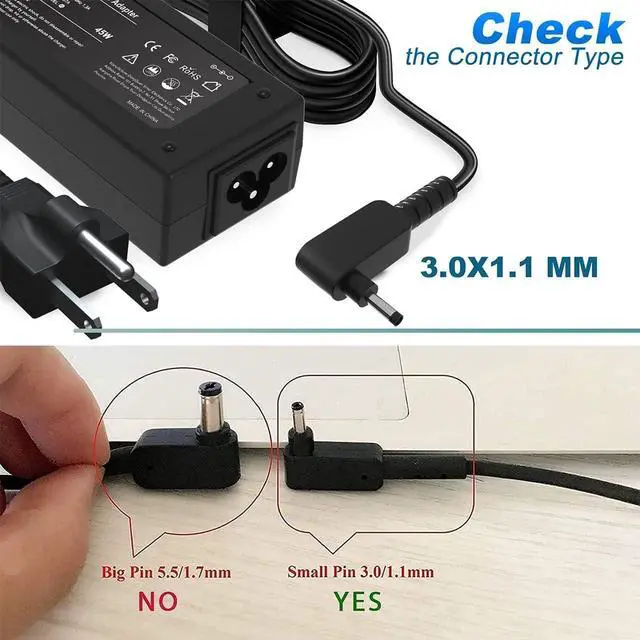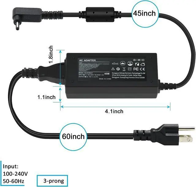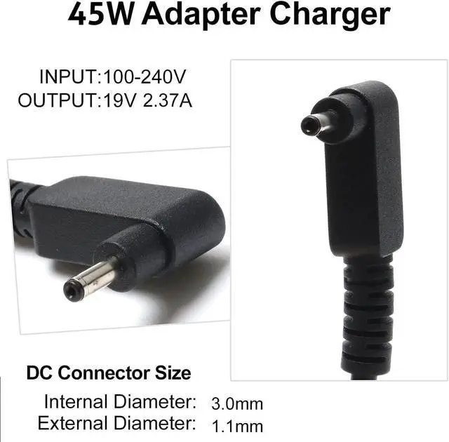 Output: 19V ~ 2.37A ~ 45W , Input: 100~240V / 50~60Hz;Connector: 3.0mm * 1.1mm