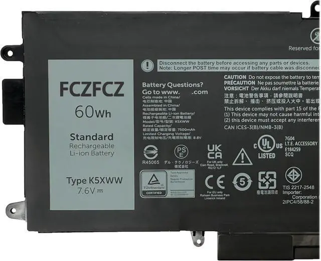 SpecificationsBattery Model: K5XWW // Voltage: 7.6V // Capacity: 60Wh 7500mAh 4-Cell // Color: Black // Condition: Brand New.