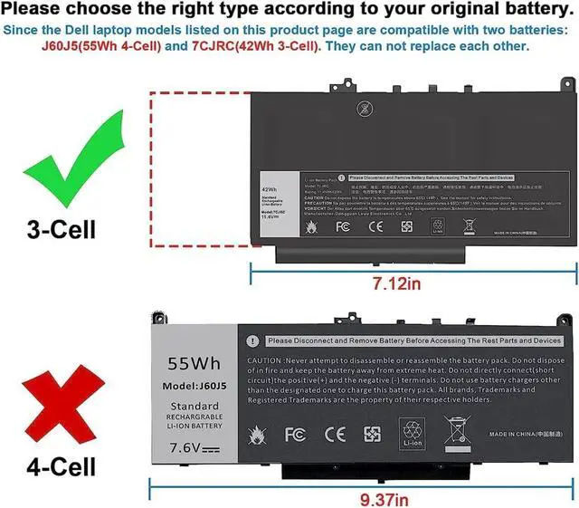 7CJRC Compatible for Dell Latitude 7470 7270 E7470 E7270 Series KNM09 0KNM09 21X15 021X15 TX283 0TX283 PDNM2 579TY F1KTM 0F1KTM V6VMN 0V6VMN 11.4V 42Wh 3-Cell