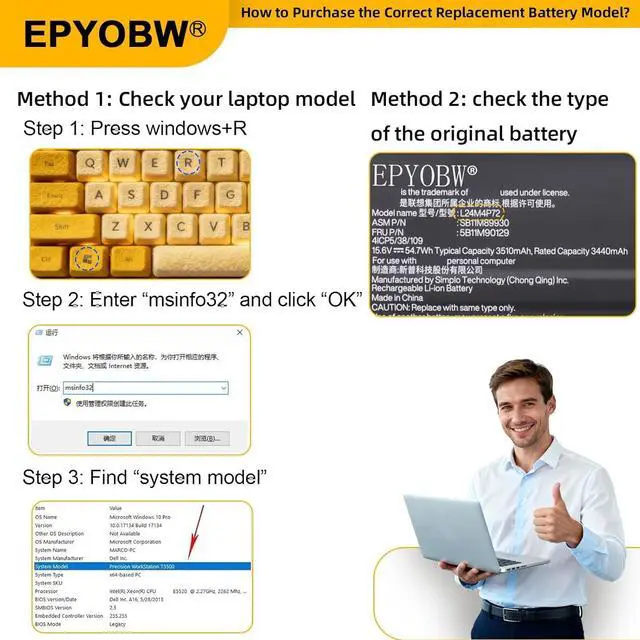 Purchase Skills Please open the back cover of the laptop before ordering and make sure that the original battery model is consistent with the listing. After getting the battery, please install the battery correctly, make sure that the battery connector is firmly connected to the laptop motherboard, and use the original charger to charge the laptop.Discharge the new battery to 5% (not 0%), then charge and cycle 3-4 times to wake up the new battery.