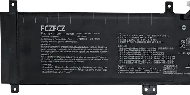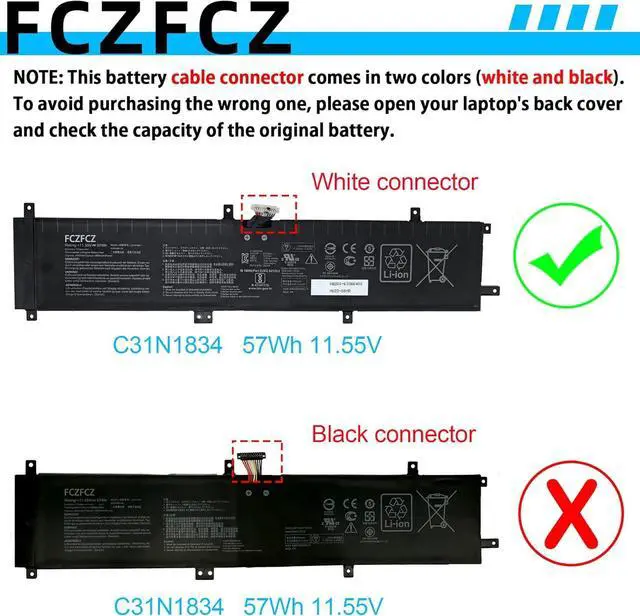 Specifications Battery Model: C31N1834 // Voltage: 11.55V // Capacity: 57Wh 4940mAh // Color: Black // Condition: Brand New.