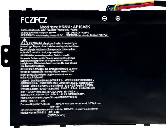 SpecificationsBattery Model:AP19A8K // Voltage: 11.55V // Capacity: 40.22Wh 3482mAh // Color: Black // Condition: Brand New.