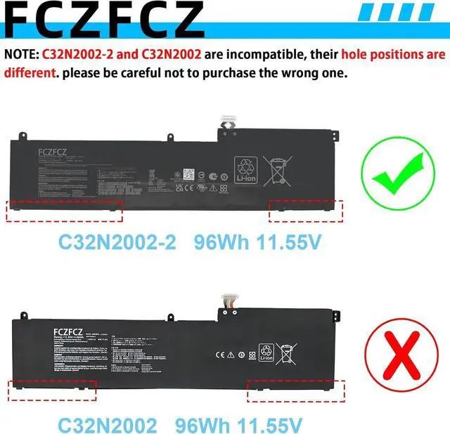 NOTE: C32N2002-2 and C32N2002 are incompatible, their hole positions are different. To ensure that you can buy the right battery, please open the back cover of the laptop and confirm that the battery you want to buy is the same as the one in the picture before ordering.