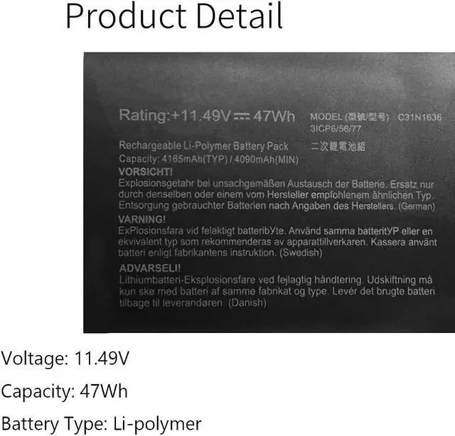 C31N1636 Compatible for Asus VivoBook Pro 15 0B200-02580100 0B200-02580000 0B200-02580200 N580V N580VN NX580VD NX580VD7300 NX580VD7700 Series Notebook(11.49V 47Wh 4165mAh)