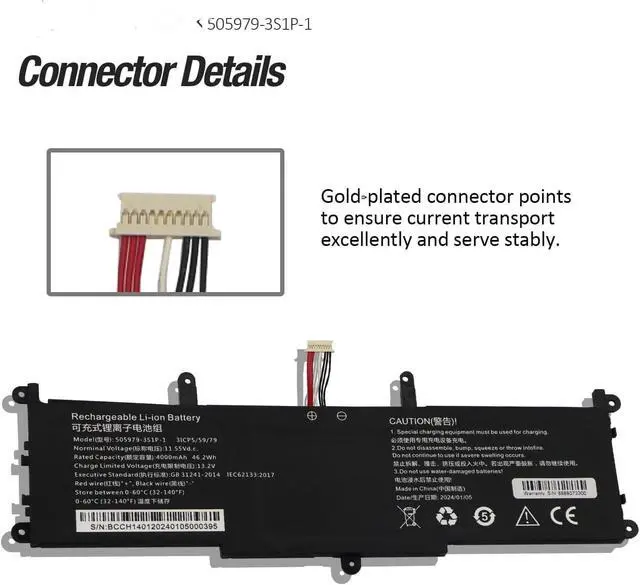 46.2Wh 505979-3S1P-1 Compatible for CHUWI CoreBook X (2021 Model) 14-inch 8th Generation Intel Core i5-8259U i5-7267U,CoreBook X 14 CWI529, Corebook Pro 13 CWI528 Series Notebook Battery