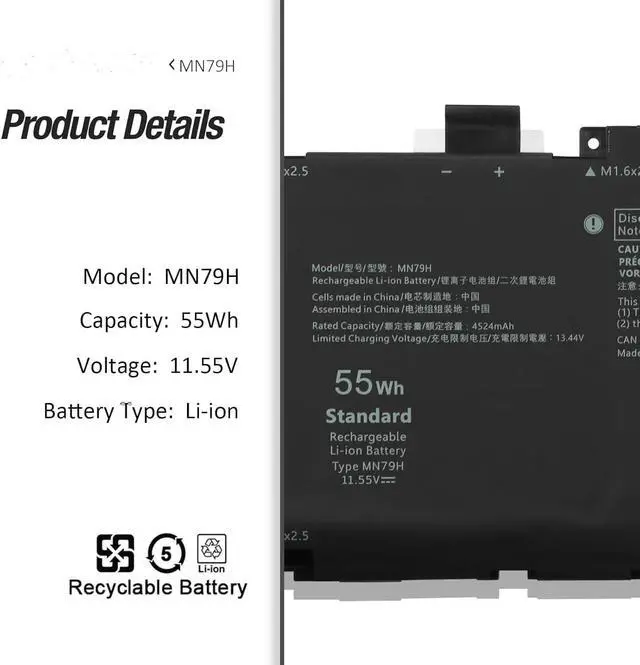 55Wh MN79H Compatible for Dell XPS 13 Plus 9320 XPS 13 9340 Series P151G P151G001 P151G002 Intel Core Ultra 5 125H 7 155H 165H 12th Gen i5-1240P i7-1260P J7H5M NXRKW 0NXRKW 0MN79H 0J7H5M