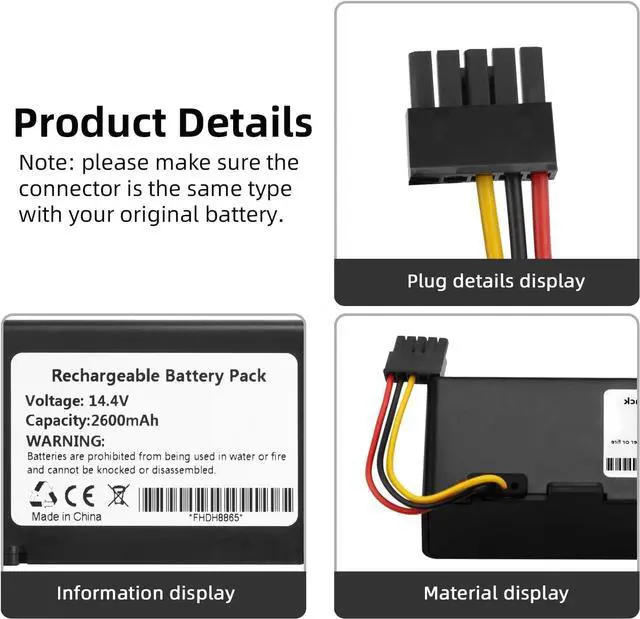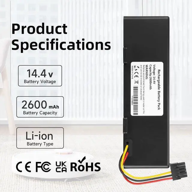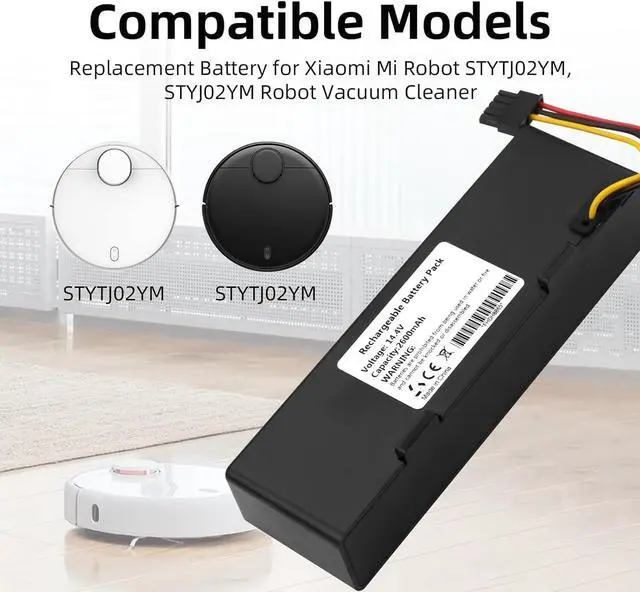 2600mAh Compatible for Xiaomi Mi Robot STYTJ02YM Xiaomi Mijia STYJ02YM Robot Vacuum Cleaner with Tool MH1-4S1P-SC 14.4V
