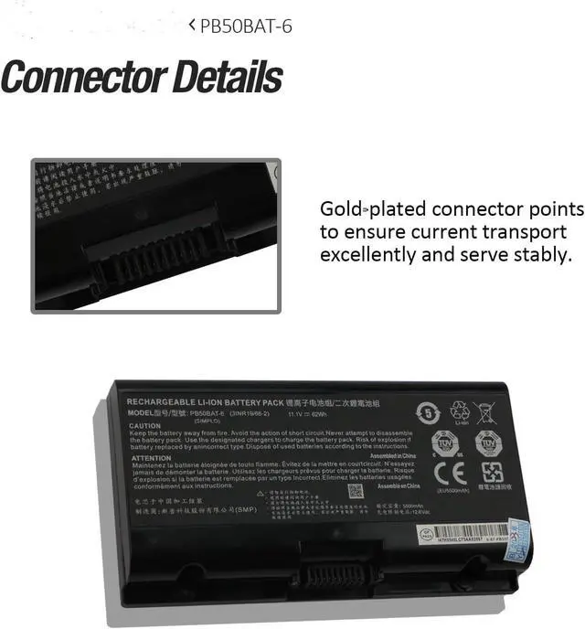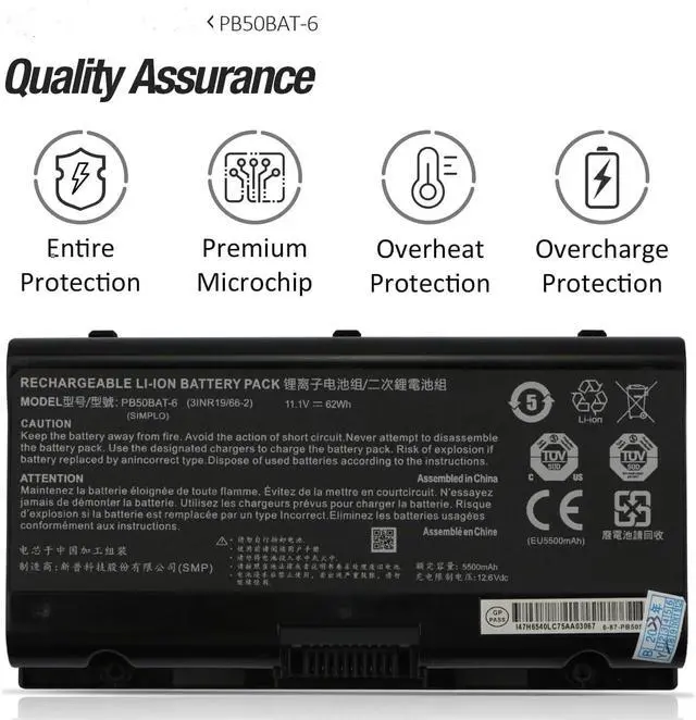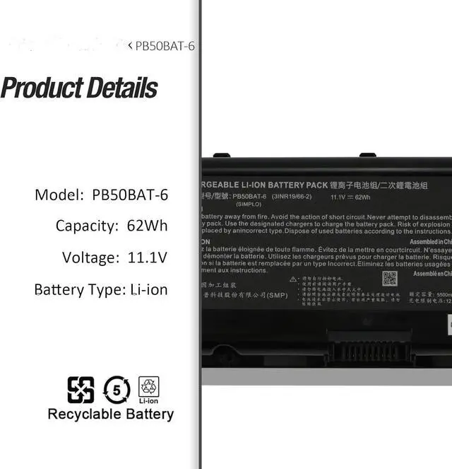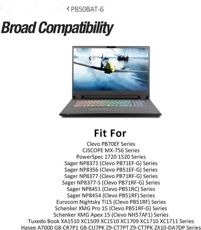 62Wh PB50BAT-6 Compatible for Clevo PB71EF-G PB51EF-G PB71RF-G PB51RC PB51RF-G NH57AF1 PB70EF PowerSpec 1720 1520 Eurocom Nightsky Ti15 Schenker XMG Pro 15 Apex 15 Sager NP8371 NP8356 NP8377