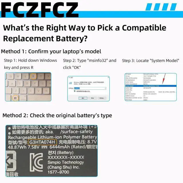 InstructionsPlease open the back cover of the laptop before purchasing and confirm that the original battery type is the same as the picture. Please read the battery instruction manual carefully before installing the battery. Please install the battery correctly and ensure that the battery interface and the motherboard are firmly connected. Please use the original charger to charge the laptop. After battery installation, discharge the new battery to 5% (not 0%), then charge and cycle 3-4 times to wake up the new battery.