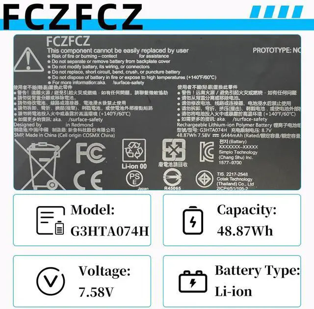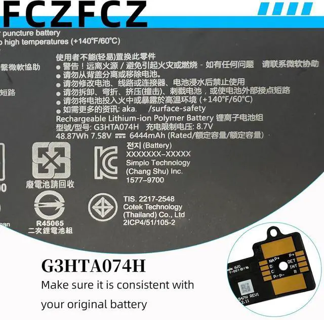 SpecificationsBattery Model: G3HTA074H // Voltage:7.58V // Capacity:48.87Wh 6444mAh // Color:Black // Condition:Brand New.