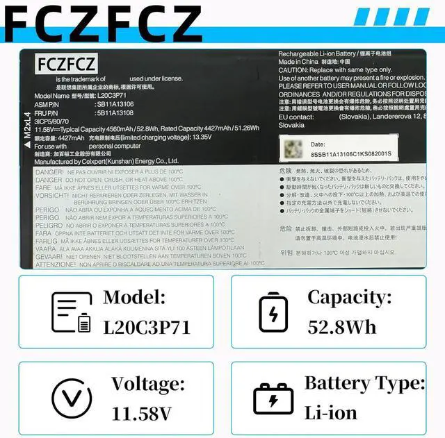 SpecificationsBattery Model: L20C3P71 // Voltage:11.58V // Capacity:52.8Wh 4560mAh // Color:Black // Condition:Brand New.