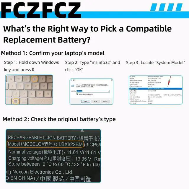 InstructionsPlease open the back cover of the laptop before purchasing and confirm that the original battery type is the same as the picture. Please read the battery instruction manual carefully before installing the battery. Please install the battery correctly and ensure that the battery interface and the motherboard are firmly connected. Please use the original charger to charge the laptop. After battery installation, discharge the new battery to 5% (not 0%), then charge and cycle 3-4 times to wake up the new battery.