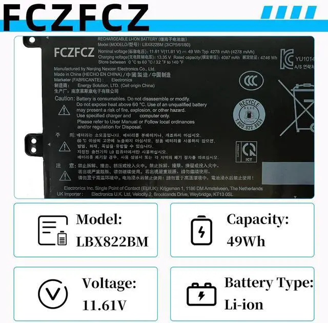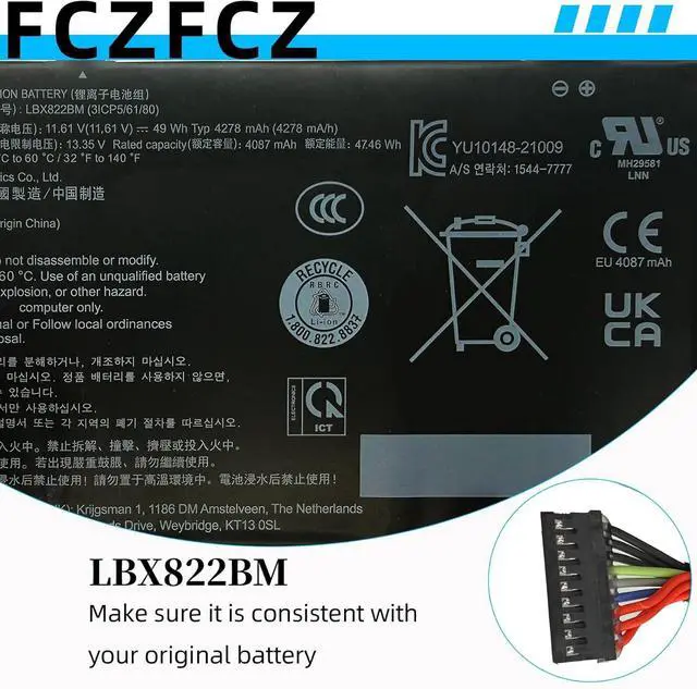 SpecificationsBattery Model: LBX822BM // Voltage:11.61V // Capacity:49Wh 4278mAh // Color:Black // Condition:Brand New.