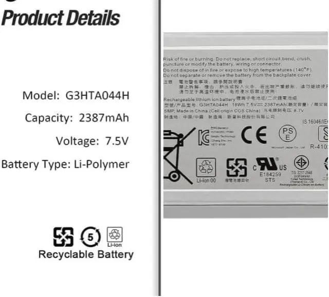 18Wh G3HTA044H Compatible for Microsoft Surface Book 1 1703 1704 1705 CR7-00005 CR7-00007 Book 2 13.5" 128GB 256GB 512GB 1TB 2-in-1 Convertible PC Battery DAK822470K G3HTA020H