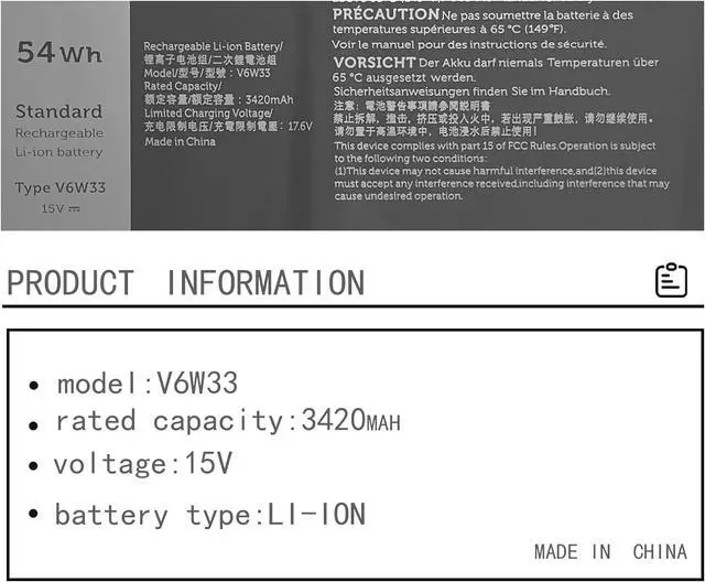 V6W33 0WV3K8 0VKYJX 0MVK11 0XDY9K G91J0 0PG8YJ 0927N5 0FH3K2 Compatible for Dell Latitude 3320 3420 3520 Inspiron 5410 5418 3510 3511 3515 5515 Vostro 5510 5515 Series(15V 54Wh)