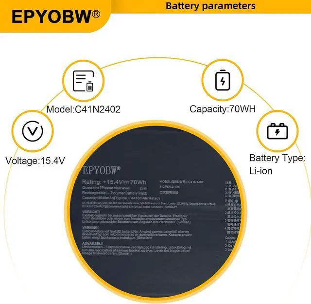 SpecificationsBattery Model: C41N2402 / Voltage: 15.4V / Capacity: 70Wh 4545mAh / Color: Black / Condition: Brand New.
