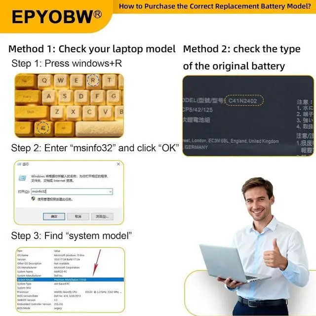 Purchase SkillsPlease open the back cover of the laptop before ordering and make sure that the original battery model is consistent with the listing. After getting the battery, please install the battery correctly, make sure that the battery connector is firmly connected to the laptop motherboard, and use the original charger to charge the laptop.Discharge the new battery to 5% (not 0%), then charge and cycle 3-95 times to wake up the new battery.