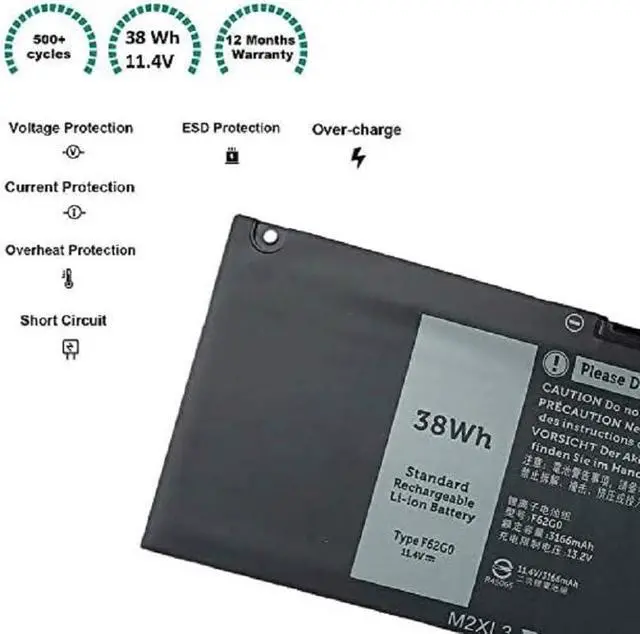 F62G0 11.4V 38Wh/3166mAh/3-Cell Batería de Repuesto para computadora portátil Compatible for Dell Inspiron13 7000 i7373 7373 7370 7380 7386 2-in-1 P83G P87G P91G P83G001 P83G002 P87G001