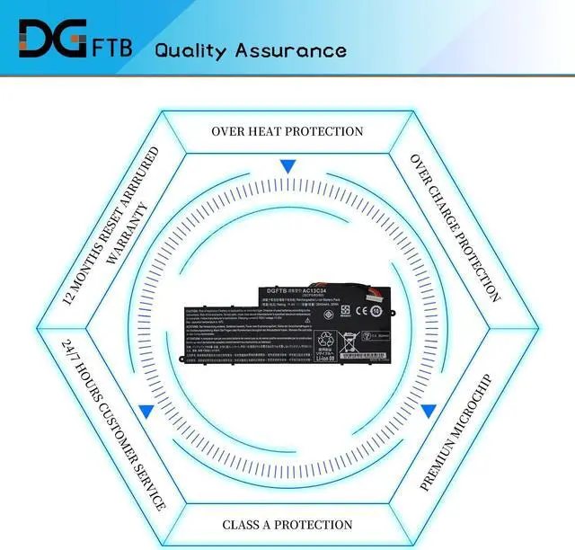 DG QualityGrade A cells mitigate the risk of battery leakage and maximize output stability. Built-in circuit protection, enhances safety of usage and extends battery lif