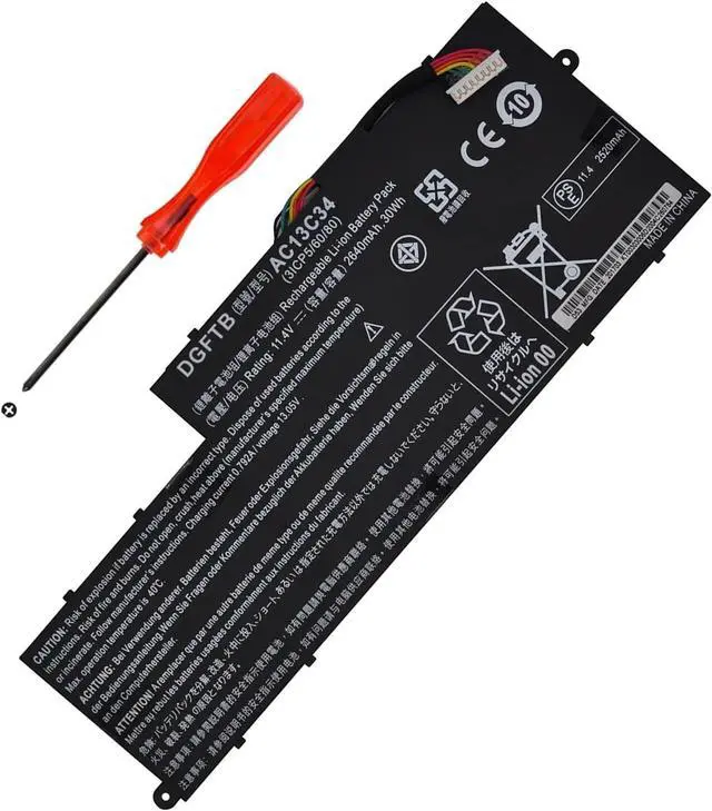 Replacement Battery Type: Li-ion; Voltage:11.4V Capacity:30Wh/2640Mah.