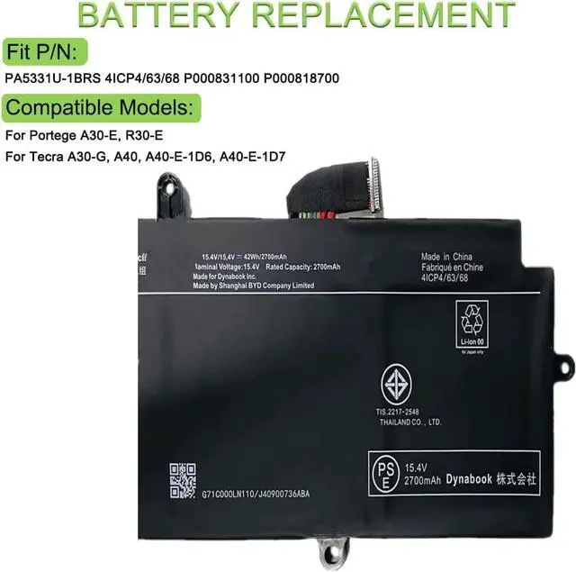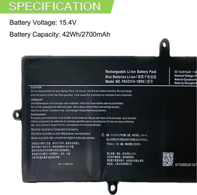 15.4V 42Wh PA5331U-1BRS Batería de Repuesto para computadora portátil Compatible for Toshiba X30L A40-G R30-A A30-E-10N AK01B AK40B P000831100 P000818700