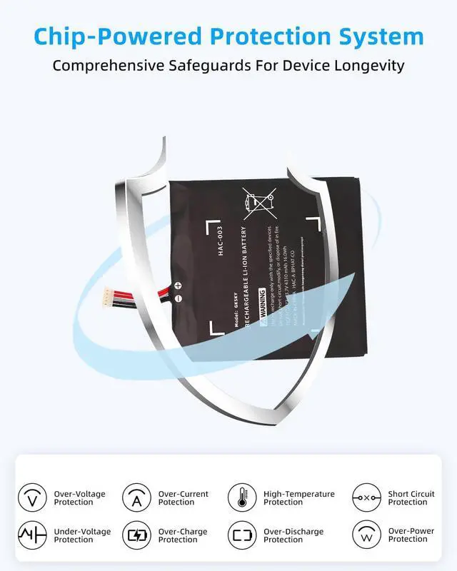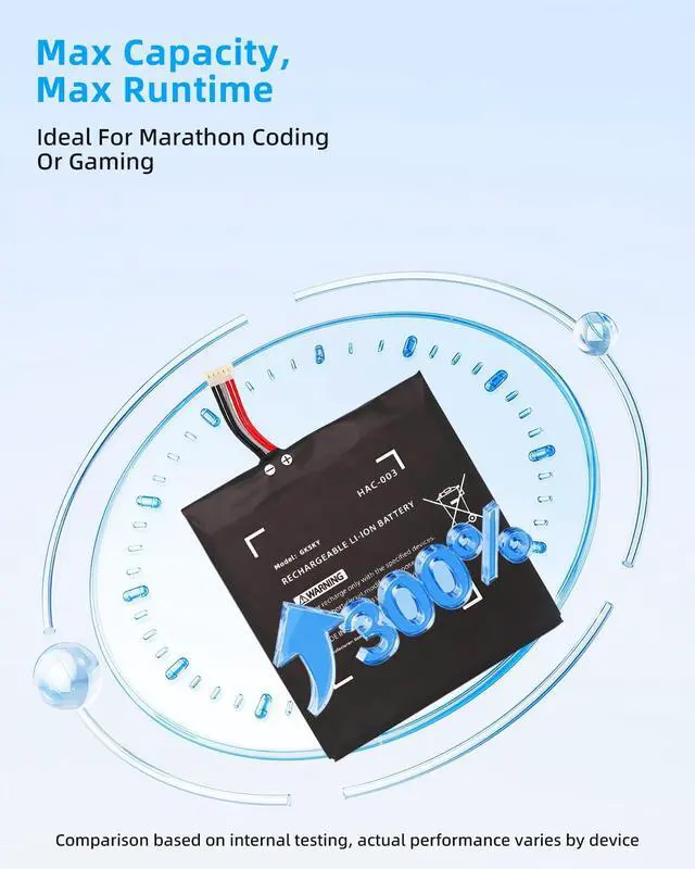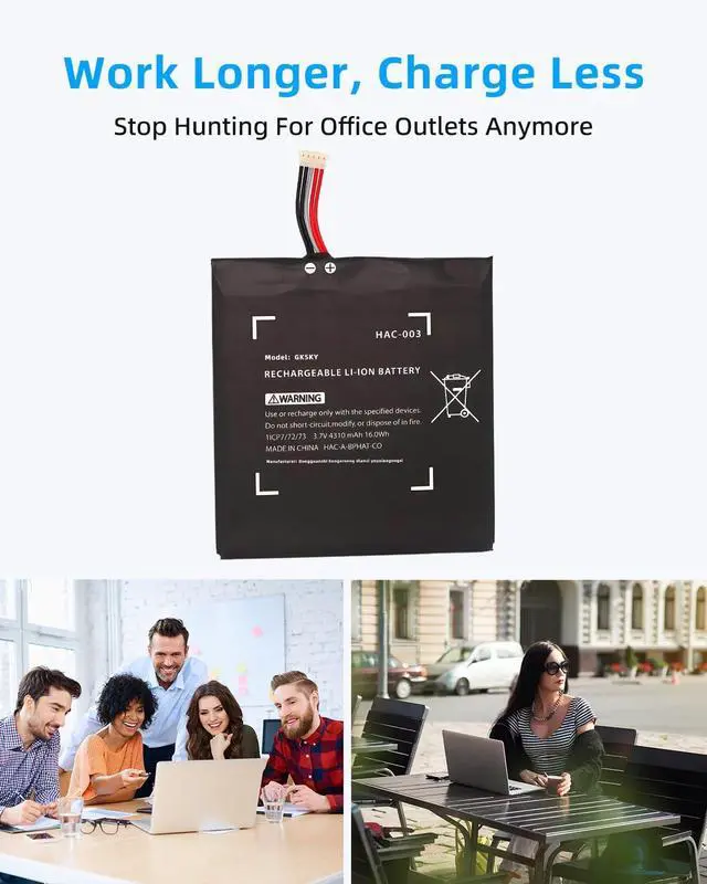 SPECIFICATION : Model Name:HAC-003 Capacity -4310mAh, 16Wh Voltage: 3.7V Grade A cells ensure fast charges and low power consumption; Built-in circuit protection ensures both safety and stability. Condition: 100% New; Battery life: More than 1000 cycles.