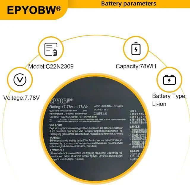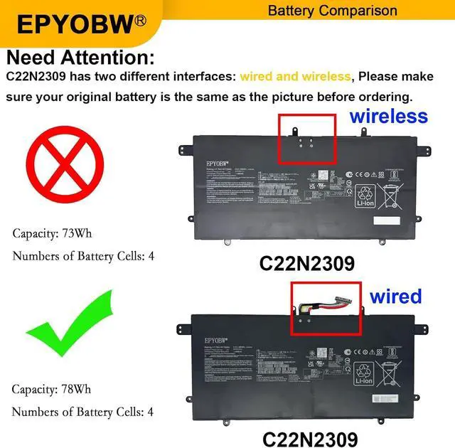 (NOTE: C22N2309 has two different interfaces: wired and wireless, Please make sure your original battery is the same as the picture before ordering.)