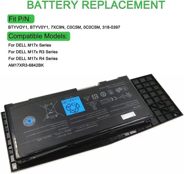 11.1V 90Wh 7XC9N BTYVOY1 Compatible for DELL Alienware M17X R3 R4 C0C5M 0C0C5M 318-0397 05WP5W 5WP5W