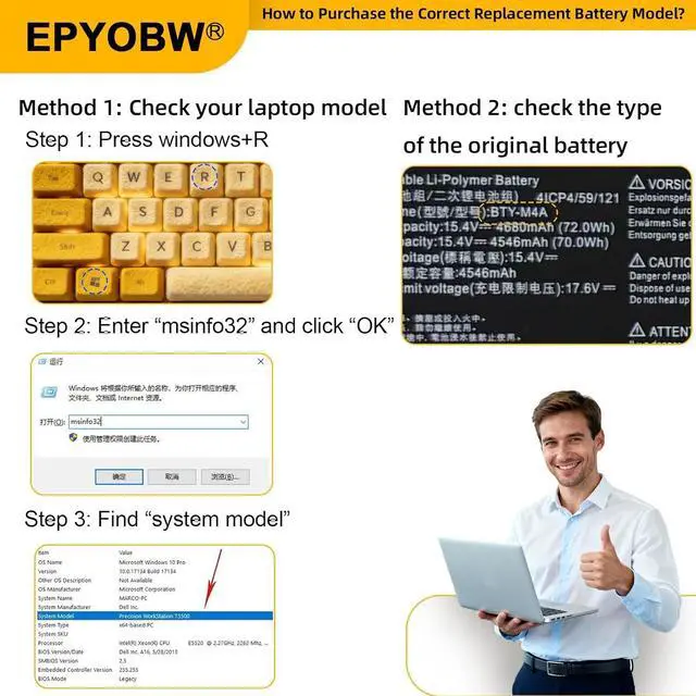 Purchase Skills Please open the back cover of the laptop before ordering and make sure that the original battery model is consistent with the listing. After getting the battery, please install the battery correctly, make sure that the battery connector is firmly connected to the laptop motherboard, and use the original charger to charge the laptop.Discharge the new battery to 5% (not 0%), then charge and cycle 3-4 times to wake up the new battery.