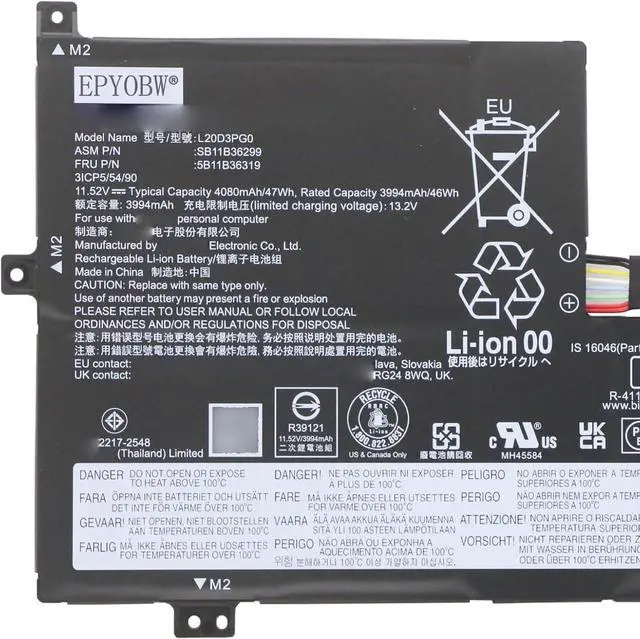 SpecificationsBattery Model: L20D3PG0 / Voltage: 11.52V / Capatity: 47Wh 4080mAh 3-Cell / Color: Black / Condition: Brand New.