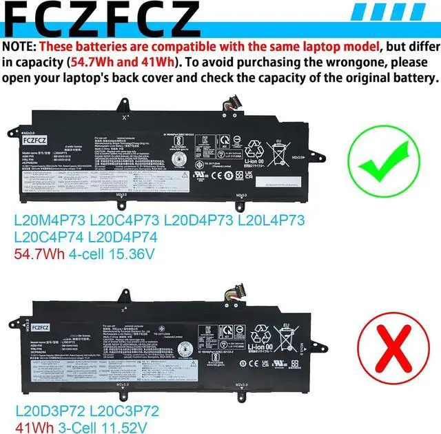 Replacement for Part NumberL20M4P73 SB10W51954 5B10W51853 SB10W51919 5B10W51818 L20L4P73 SB10W51953 5B10W51852 SB10W51918 5B10W51817 L20C4P73 SB10W51955 5B10W51854 SB10W51920 5B10W51819 L20D4P73 SB10W51956 5B10W51855 SB10W51921 5B10W51820 L20C4P74 SB10W51922 5B10W51821 L20D4P74 SB10W51923 5B10W51822 L20D3P72 SB10W51960 5B10W51859 SB10W51948 5B10W51825 L20C3P72 SB10W51959 5B10W51858 SB10W51947 5B10W51824 (NOTE: Please kindly open your laptop back cover to confirm your original battery model is the same as listed here. Thanks!)