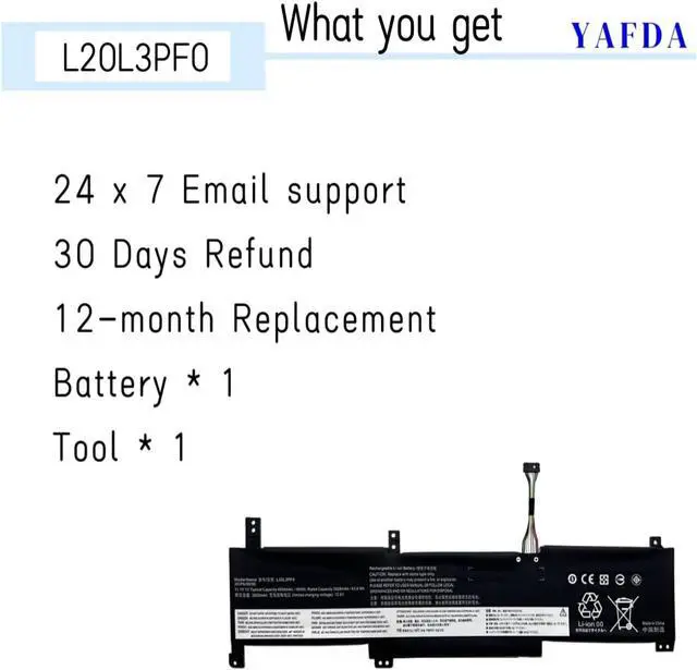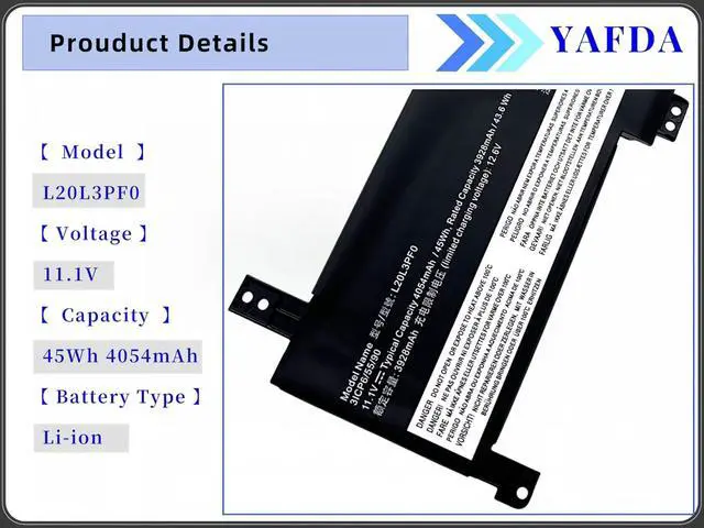 Battery Model :L20L3PF0 , Voltage: 11.1V; Capacity: 45Wh 4054mAh || Color: Black. Type: Li-ion Battery