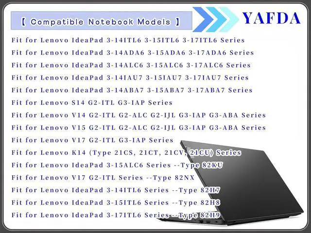Compatible Machine Models : for Lenovo S14 G2-ITL G3-IAP series; for Lenovo V14 G2-ITL G2-ALC G2-IJL G3-IAP G3-ABA G4-IRU series; for Lenovo V15 G2-ITL G2-ALC G2-IJL G3-IAP G3-ABA G4-IRU series; for Lenovo V15 G3-IAP CTO series; for Lenovo V17 G2-ITL G3-IAP G4-IRU series; for Lenovo IdeaPad 3-14ADA6 3-14ALC6 3-14ITL6 3-14ABA7 3-14IAU7 3-15ADA6 3-15ALC6 3-15ITL6 3-15ABA7 3-15IAU7 3-17ADA6 3-17ALC6 3-17ITL6 3-17ABA7 3-17IAU7 3-17IRU7 series; for Lenovo K14 (Type: 21CS, 21CT, 21CV, 21CU) series
