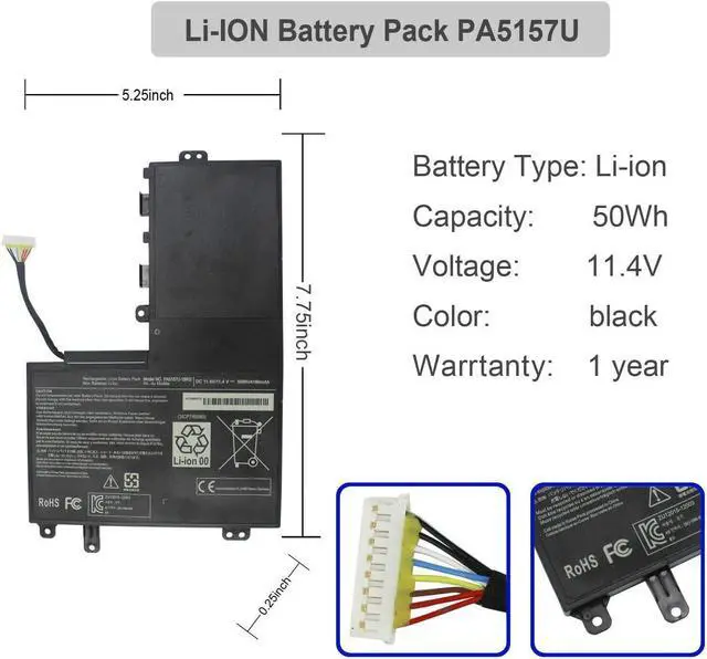 PA5157U-1BRS Battery Compatible for Toshiba Satellite U940 E45T E45T-A4100 E45T-A E45T-A4200 E45t-a4300 E55 E55T-A5320 E55-A5114 15.6" PA5157U PR 00057 7250 [11.4V 50WH]