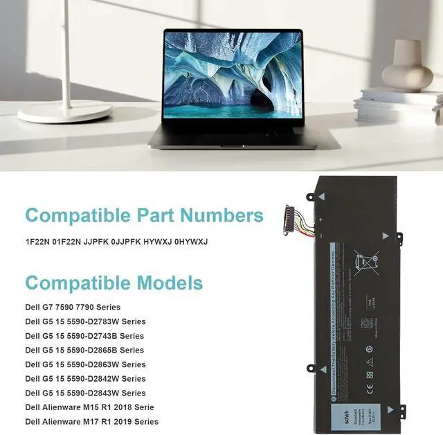 60Wh 1F22N Compatible for Dell M15 M17 R1 G7 7590 7790 G5 5590-D2783W D2743B D2865B D2863W D2842W D2843W Series 01F22N JJPFK 0JJPFK HYWXJ 0HYWXJ XRGXX 06YV0V 4 Cell