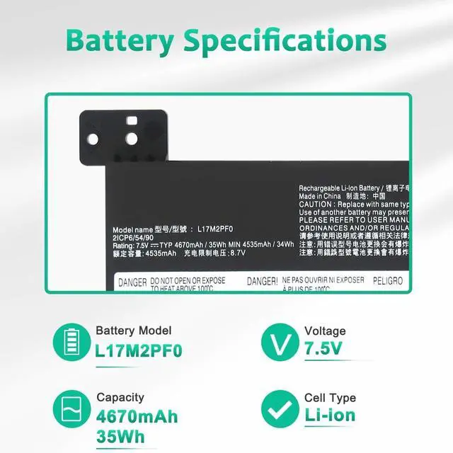 PERFECT-FIT BATTERY MODELS:Support for L17D2PF1 L17L2PF2 L17M2PF2 L17M2PF0 L17L2PF0 L17M2PF1 5B10Q62138 5B10Q62139 5B10Q41211 5B10Q41212.