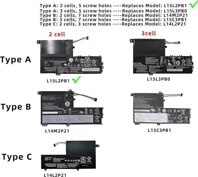 PLEASE CONFIRM BEFORE ORDERING: This laptop model uses multiple batteries that look similar but are NOT interchangeable due to different screw hole positions and cell counts. You MUST open your laptop and check your original battery's:Screw hole count & position. Number of cells (2 or 3) Connector direction. Then compare with our main image. Many batteries appear similar - verifying these details prevents wrong purchases.Check physically before ordering!