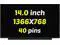 Screen Size: 14 inch; Resoluiton: 1366x768.