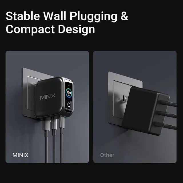 Safe Protection MINIX 100W charger supports PPS, PD3.0, and QC3.0 protocols for efficient charging across most devices. Complete protection, includes over-current, over-voltage, over-temperature, and short-circuit, ensures secure and stable charging for your electronics.