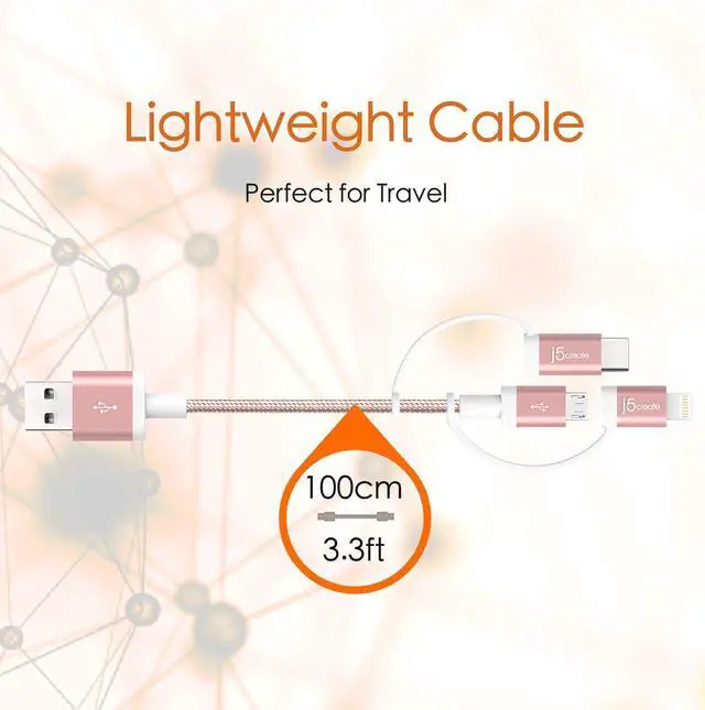 DURABLE NYLON BRAIDED CABLE: Cord features aluminum housing around the connector heads and a nylon braiding covering for superior durability and flexibility, allowing the cable to hold up to the rigors of everyday use
