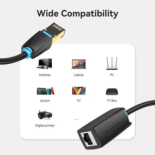 [Ethernet Extension Cord] Perfect for extending your existing CAT 8 ethernet connection cable to reach a router or video streaming device