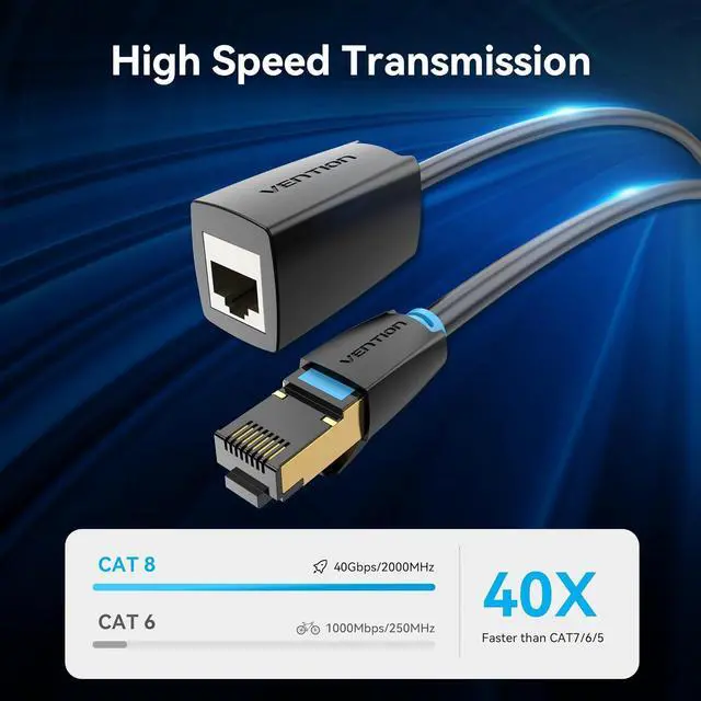 [Universal Compatibility] CAT8 ethernet extension cable backward compatible with preceding ethernet standards such as CAT7 CAT6 and CAT5