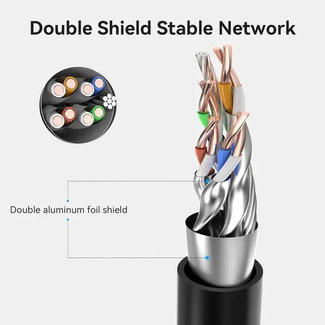 [High-Quality Material] Shielded/foiled twisted pair (SSTP/SFTP) patch cables are made of oxygen free copper wire, and it is efficient in reducing EMI/RFI interference and provide highest fidelity for long-distance data transmission